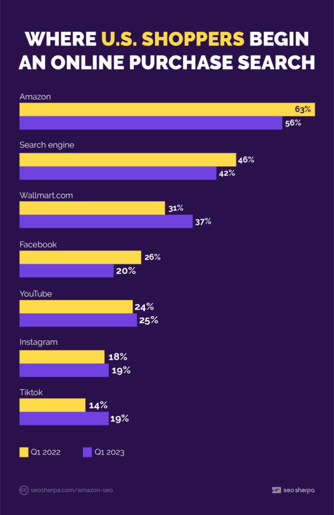 As of Q2 2023, 57% of U.S. consumers began their product searches on Amazon, compared to just 42% who started on a search engine.