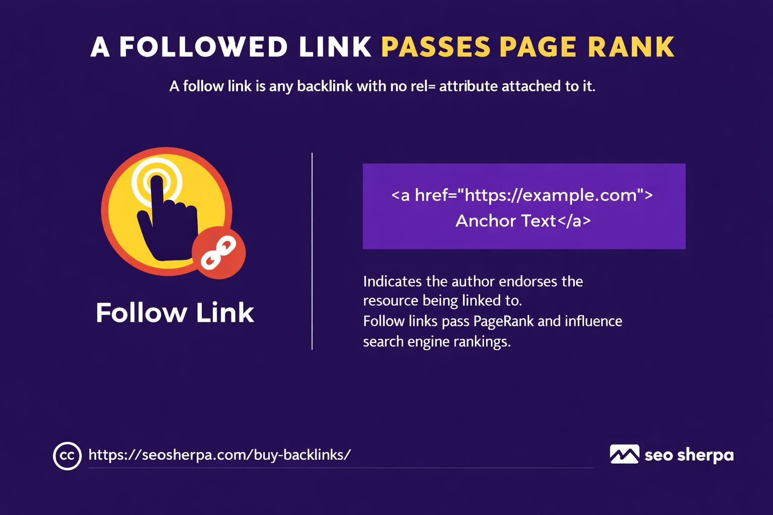 A “follow” link is any backlink with no “rel=” marker attached to it.