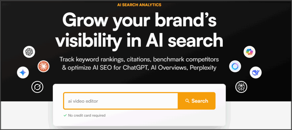 The free version lets you track AI mentions, citation data, and brand presence across major AI search engines without entering your card details. It’s lightweight, fast, and gives you a clean signal on whether answer engines even know you exist.