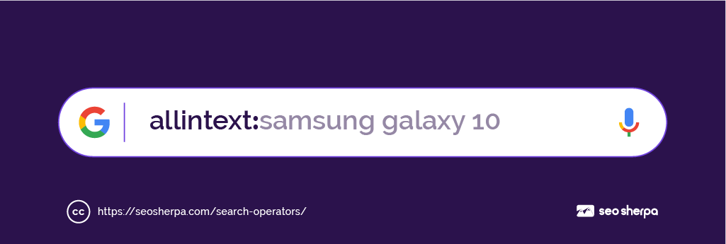 Example: allintext:samsung galaxy 10 / allintext:”samsung galaxy 10″