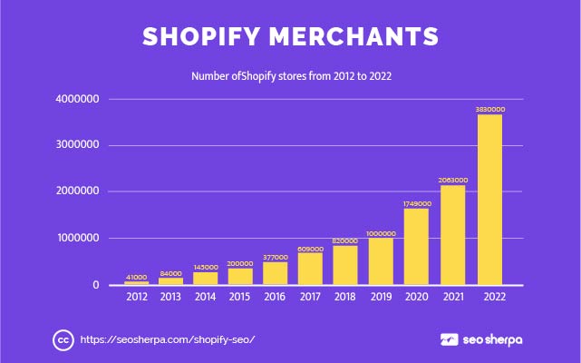 By 2022, Shopify had a whopping 3.83 million merchants and at least 2.1 million daily active users.