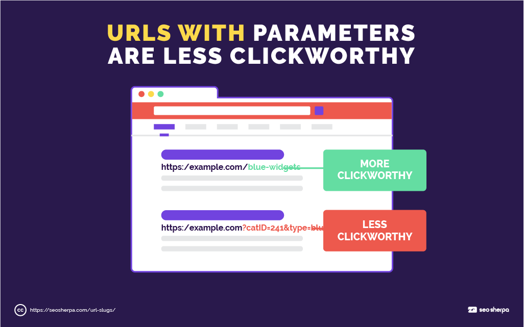 That way, when a user sees your URL, they’ll get an excellent sense of what they’ll find when they click to the destination page.